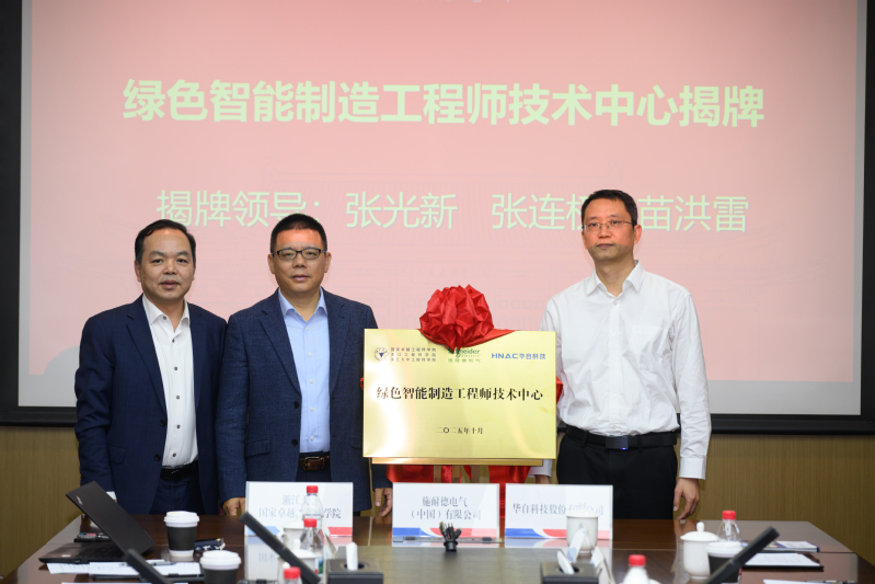 2025年10月28日下午,学院与施耐德电气(中国)有限公司、华自科技股份有限公司三方共建“绿色智能制造”工程师技术中心签约揭牌仪式在行政楼302会议室隆重举行。此次合作是三方响应国家“加快高水平科技自立自强 引领发展新质生产力”战略部署的关键举措,标志着校企在绿色智能制造领域产学研用深度融合迈入新阶段。