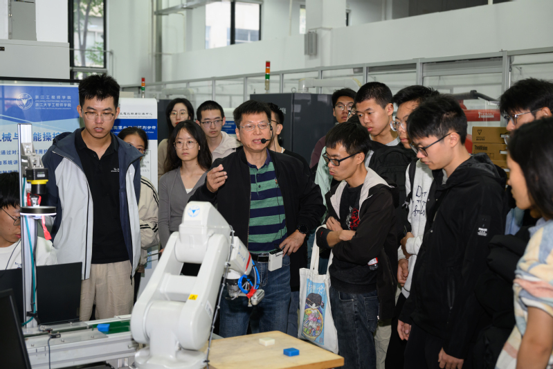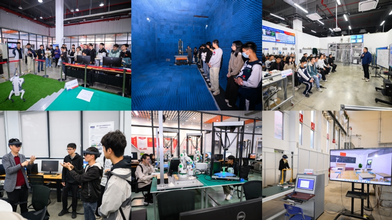 随后,工程创新与训练中心副主任沈剑峰带领师生依次参观高效清洁低碳能源、信息与微电子工程、机器人与智能制造等八大工程技术实践平台,现场讲解复杂工程系统的综合认知方法及产业前沿技术的创新实训路径。