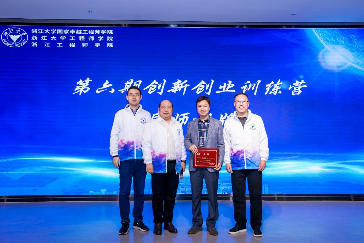 在热烈的掌声中,浙江大学工程师学院创新创业中心副主任胡松钰老师为方毅先生颁发了创新创业训练营导师聘书,邀请他成为学员们创新创业路上的引路明灯。
