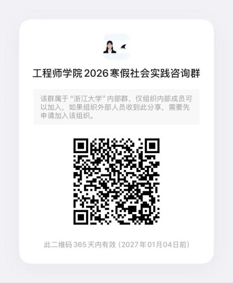为深入学习贯彻党的二十届四中全会精神和全国科技“三会”、全国教育大会精神,全面贯彻落实《教育强国建设规划纲要(2024—2035年)》和习近平总书记对浙江大学系列重要指示精神,学校决定深入实施新时代“使命担当”铸魂工程,进一步深化“大思政课”实践育人实效,鼓励和引导广大青年学生将个人小我融入国家大我,在实践中坚定理想信念、练就过硬本领。浙江大学大学生社会实践领导小组办公室决定开展2025-2026学年寒假大学生社会实践活动,根据校团委《关于组织开展浙江大学2025-2026学年新时代“使命担当”铸魂工程寒假大学生社会实践活动的通知》要求,现将工程师学院寒假社会实践有关事项通知如下: